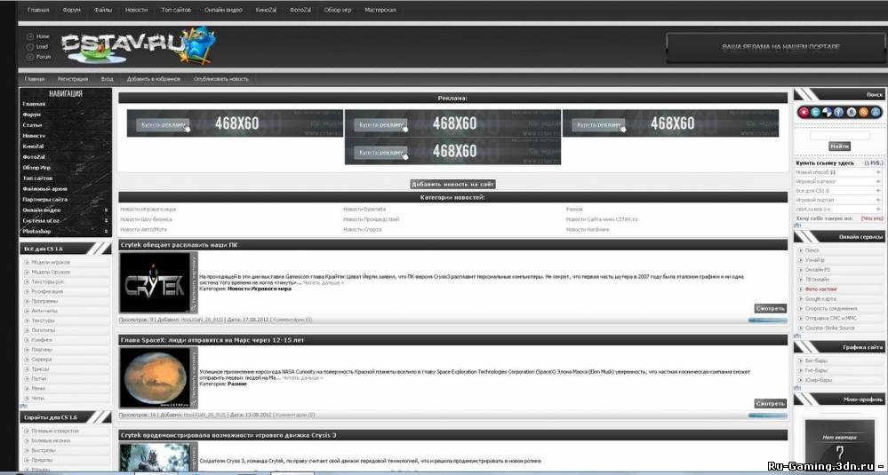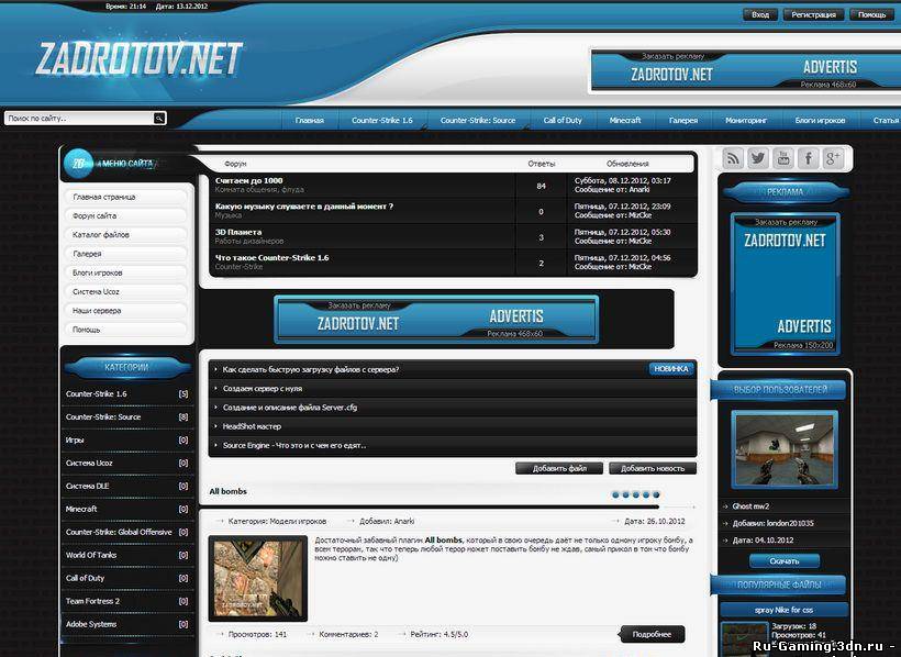 Наш сайт Ru-Gaming.do.am расположен в системе uCoz. Мы советуем систему uCoz всем нашим участникам, которые хотят создать стабильный, привлекательный и популярный сайт!